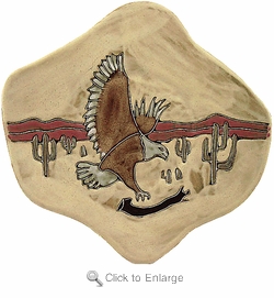 This Mara Stoneware Dinner Plate was designed with an eagle after prey, cactus and mountains in the background.